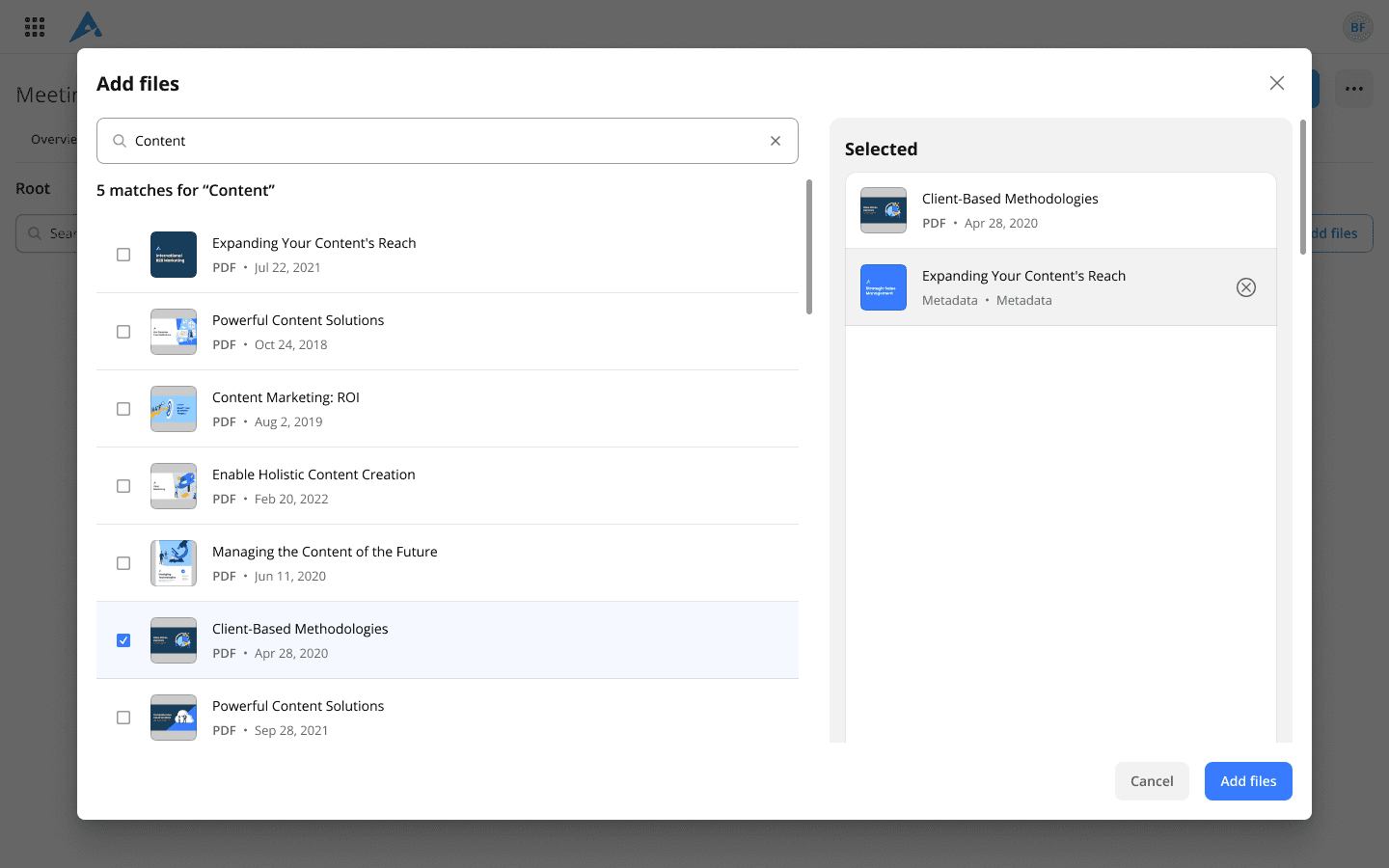 I worked on modernizing the UX and UI of Bigtincan’s Meetings experience across a full workflow ambition and a later shift toward aggregation by navigating tight constraints, evolving strategy, and difficult market timing.